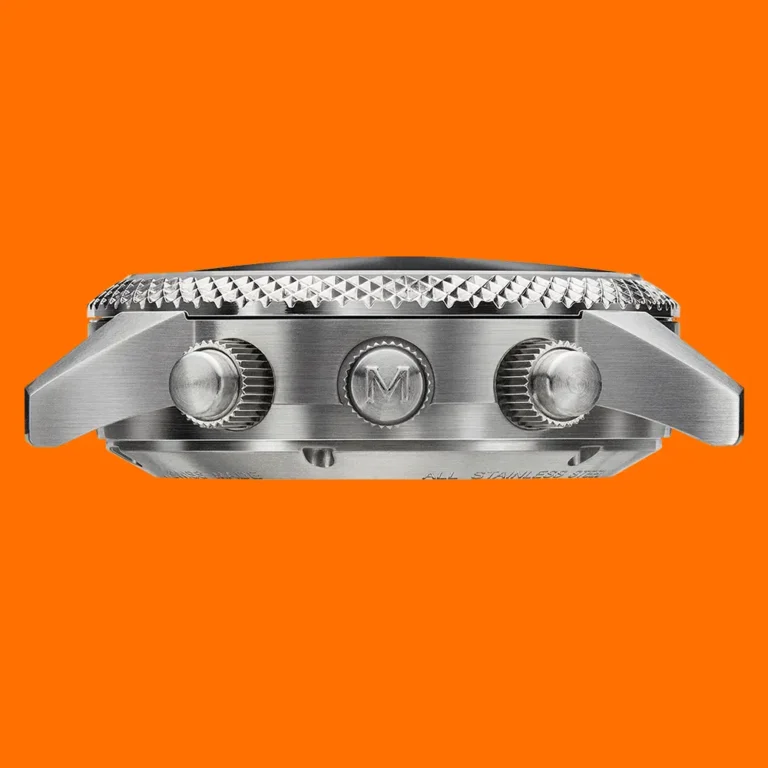 Die geriffelte Lünette steht für Widerstandskraft, weil sie hoher Beanspruchung die Sichtbarkeit nimmt, das hitzebeständige Textilarmband für Staub, Hitze und Bewegung. Saphirglas mit beidseitiger Antireflex-Beschichtung, 100 Meter Wasserdichtigkeit und ein robustes Edelstahlgehäuse machen diese Uhr zu einem Begleiter, der nicht fragt, sondern mitgeht.