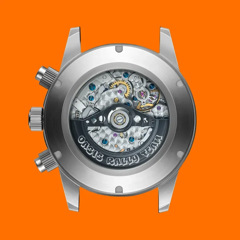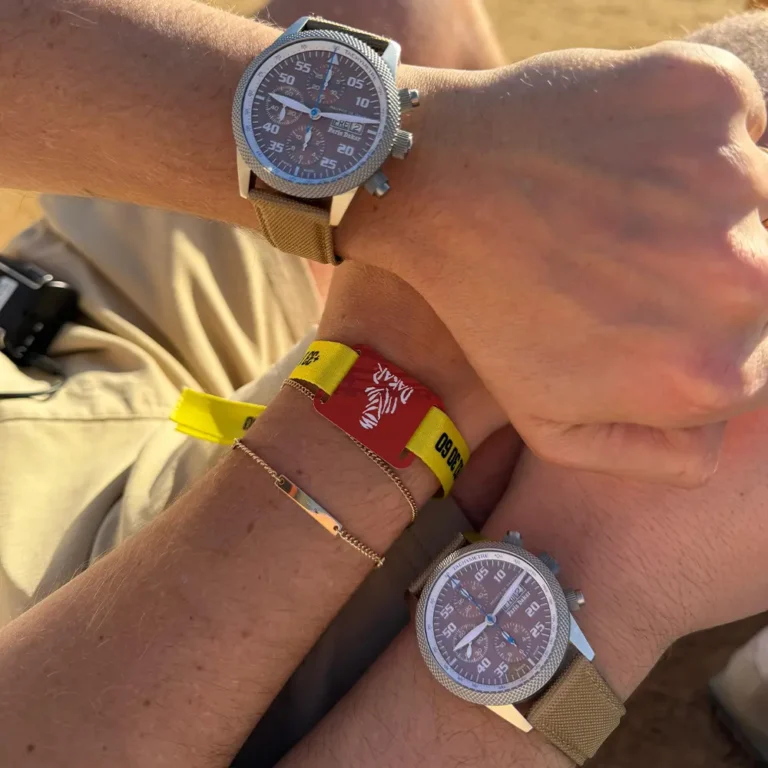 Die Oasis Rally Team, gebaut auf der Chrono Modern, dem Klassiker von Daniel Dreifuss, trägt sie unsere DNA in sich: klar, ehrlich, kompromisslos. Ihr sandfarbenes Zifferblatt mit feiner Struktur wirkt, als habe der Wüstenwind selbst daran gearbeitet. Es nimmt das Licht der Dakar auf und trägt es weiter – durch Etappen ebenso wie durch den Alltag echter Rallye-Fans. Das Tachymeter in den Farben blauer Flammen erinnert an Hitze, Energie und Leidenschaft.