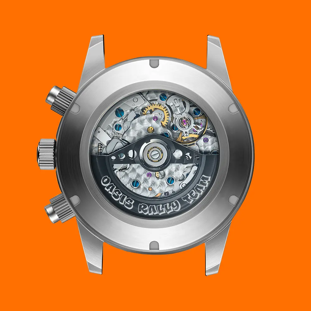 Built on the Chrono Modern — the Oasis Rally Team watch carries our DNA within it: clear, honest, uncompromising. Its sand-coloured dial with fine texture feels as though the desert wind itself has shaped it. It captures the light of the Dakar and carries it forward — through the stages and into the everyday life of true rally enthusiasts. The tachymeter in the colours of blue flames evokes heat, energy, and passion.