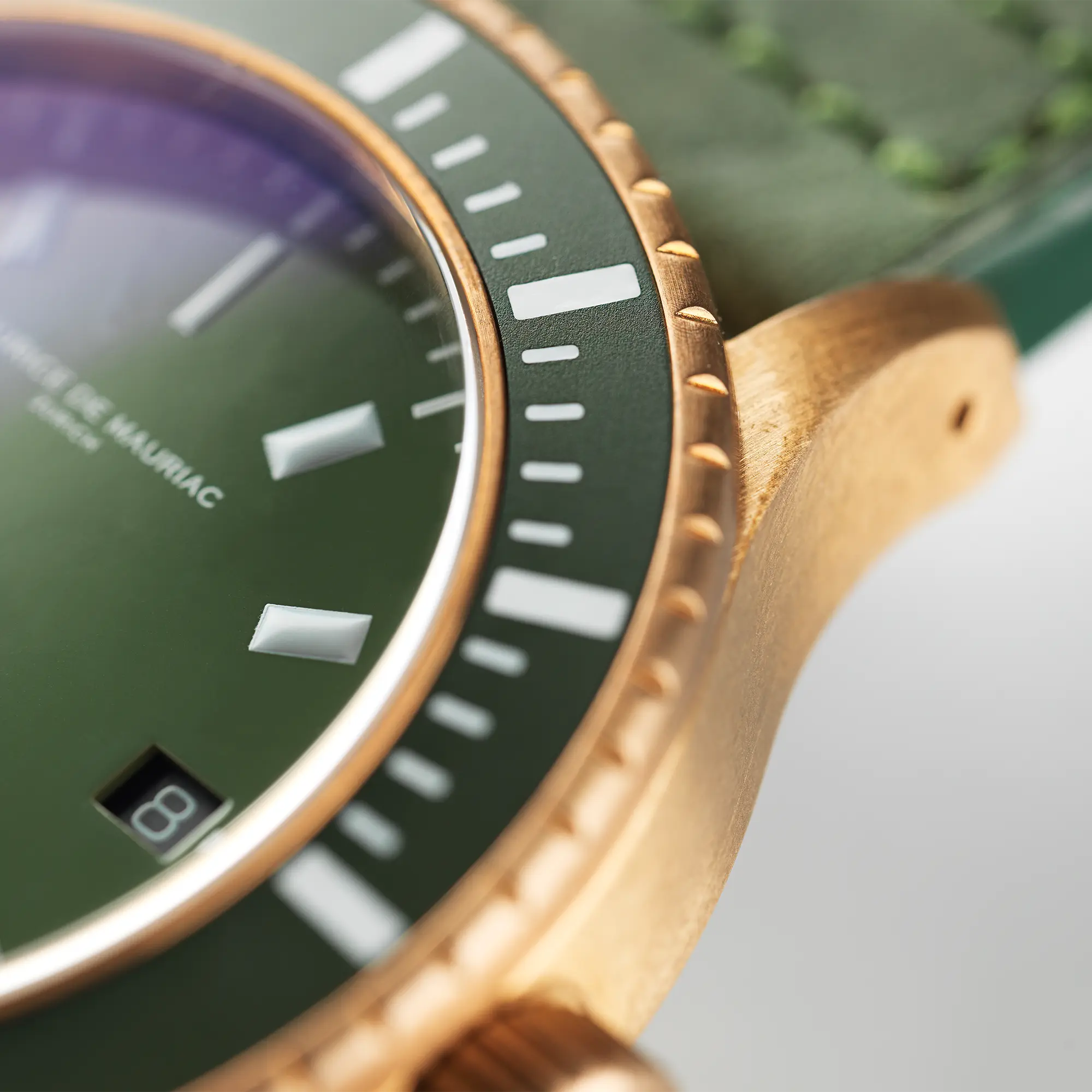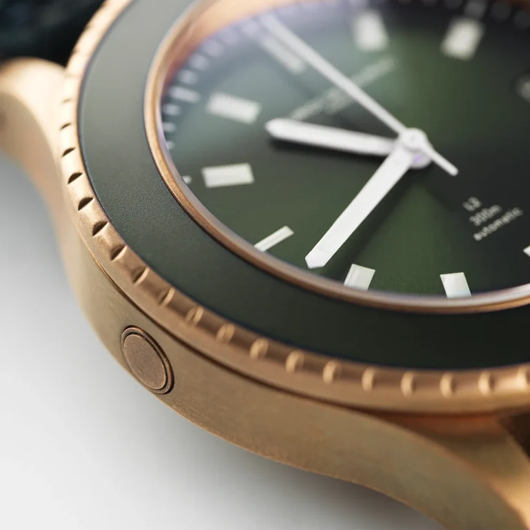 “Die klaren, schnörkellosen Linien der L-Serie eignen sich perfekt für die Iteration eines Tauchers, die ebenso viel Substanz wie Stil ist: Wasserdichtheit auf 300 m, Zürcher Bronzegehäuse und ein Heliumauslassventil sind weitere Merkmale. Was bedeutet das? Nichts weniger als die Fähigkeit, einen langen Sättigungstauchgang zu machen, ohne Angst zu haben, dass dein Saphirglas abfällt, wenn du endlich wieder auftauchst und dich entspannst.”
