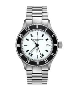 “Die klaren, schnörkellosen Linien der L-Serie eignen sich perfekt für die Iteration eines Tauchers, die ebenso viel Substanz wie Stil ist: Wasserdichtheit auf 300 m, DLC-beschichtetes Edelstahlgehäuse und ein Heliumauslassventil sind weitere Merkmale. Was bedeutet das? Nichts weniger als die Fähigkeit, einen langen Sättigungstauchgang zu machen, ohne Angst zu haben, dass dein Saphirglas abfällt, wenn du endlich wieder auftauchst und dich entspannst.”