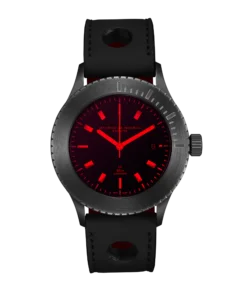 “Die L2 ist eine Taucheruhr, die unter Wasser grossen Druck aushält. Und an Land als Hingucker überzeugt. Der 316L-Edelstahl des Gehäuses mit der Diamond-like Carbon Beschichtung reflektiert das Licht mit souveräner Här-te, das ETA 28.24-2 Uhrwerk ist von hoher Zuverlässigkeit, das Design von Fabian Schwaerzler von den Werten des Bauhauses durchdrungen. Und aussergewöhnlich ist natürlich das rote Uhrenglas, dass die Uhr zu einem energiegeladeneren Statement macht. Typisch Maurice de Mauriac.”