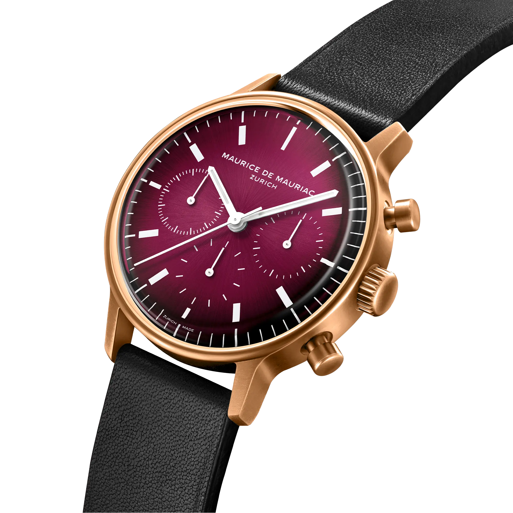 “Die Zürcher Schule der Konkreten hat Schwaerzler ebenso inspiriert, wie Klassiker dieses Uhrentyps, um sich von dort in gerader Linie weiter zu entwickeln – die L(inien)-Serie zu vollenden. Sie ist eine Klasse für sich geworden und damit würdiger Teil des Uhren-Triptychons der L-Serie. Wir nennen sie eine Cuff Watch, weil sie Manschette und Anzugärmel mit geringer Gehäusehöhe und hoch gewölbtem Glas sanft streicht”
