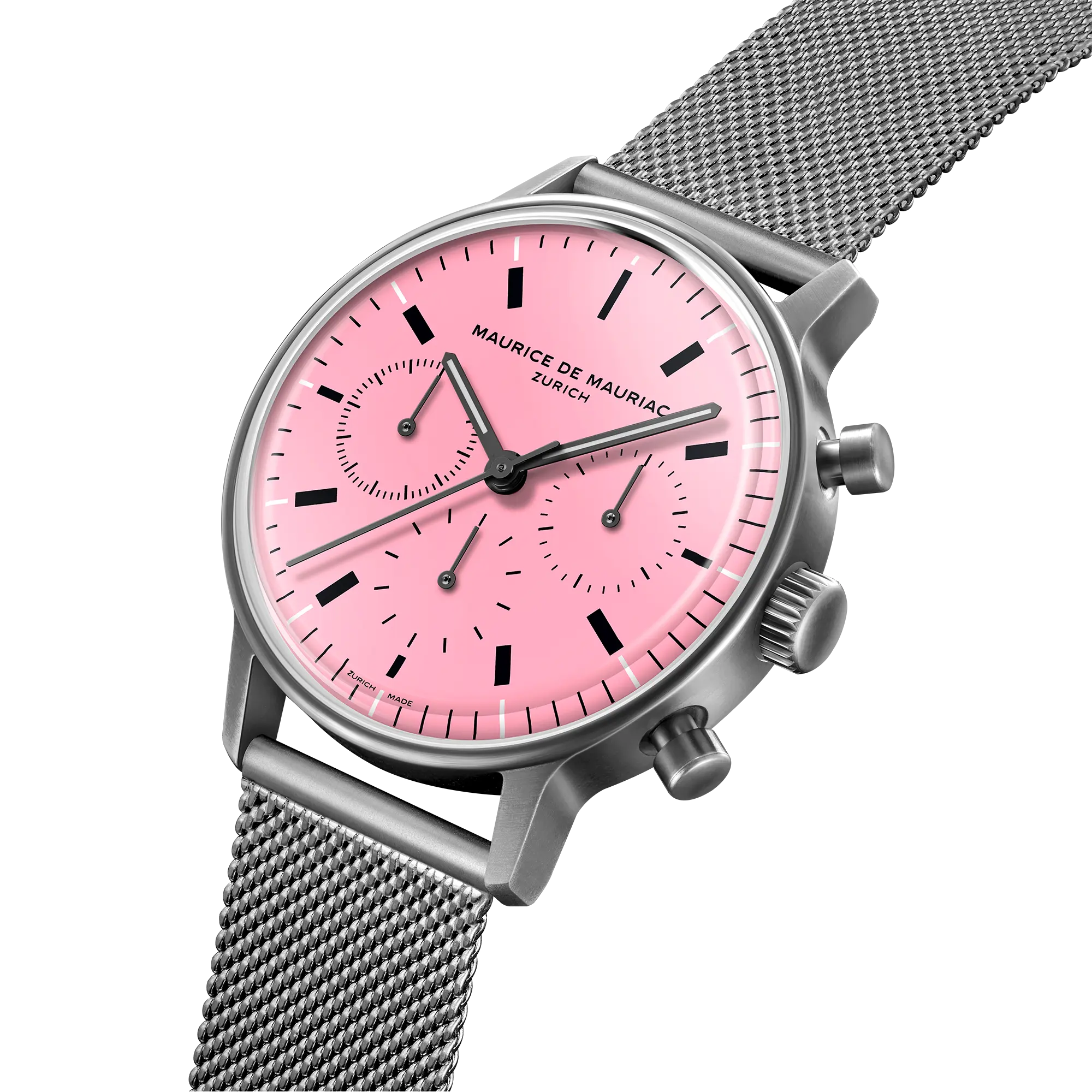“Die L3 Cherry Blossom ist eine konsequente Weiterentwicklung der L3 sees red», sagt Leonard Dreifuss, der bei Maurice de Mauriac das Design verantwortet. “Wir tauschten für die Special Edition zum Pink October das für diese Uhr so typische rote Uhrenglass gegen eines in zartem Pink aus. Auch das Zifferblatt und das Uhrenband strahlen in Pink. “Das charakteristische Design der L-Serien von Maurice de Mauriac, L1, L2 und L3, stammt vom renommierten Schweizer Designer Fabian Schwaerzler. “Die L3 Cherry Blossom soll gleichsam Statement sein für die, die Betroffenen Mut machen wollen, wie auch die, die den Kampf mit der Krankheit angenommen oder schon gewonnen haben”, ergänzt Massimo Dreifuss.