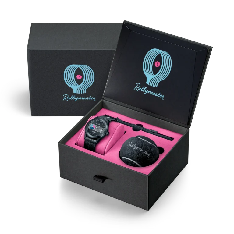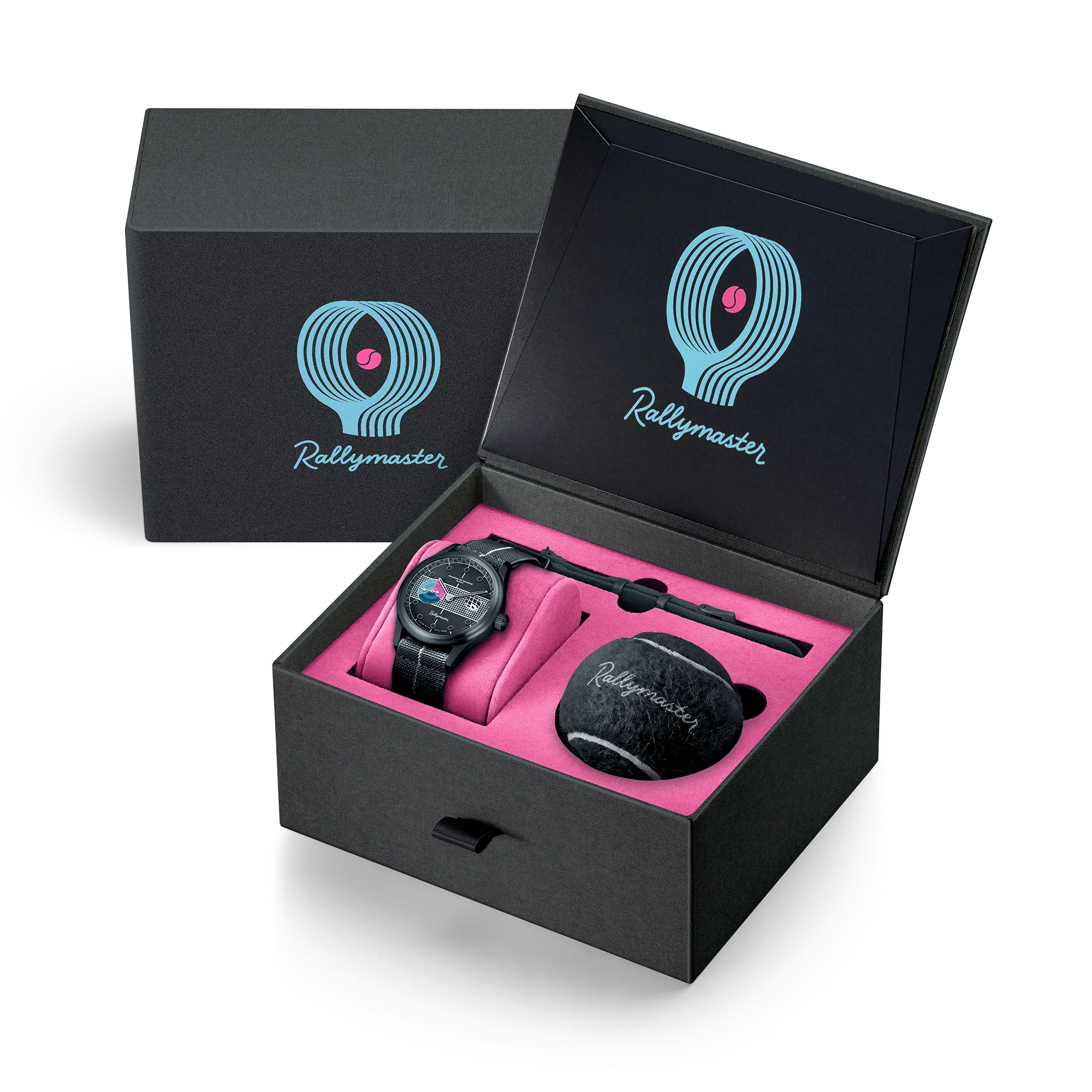 Racquet präsentiert seine vierte Uhr, die Rallymaster IV, eine vom Tennissport inspirierte Armbanduhr, die in Zusammenarbeit mit uns entwickelt wurde. Das all Black Design zelebriert den Tennis-Lifestyle auf und neben dem Platz.