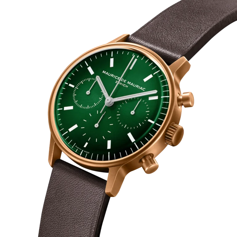 Noah trägt eine L3 in Bronze mit diesem besonderen grünen Zifferblatt. Er liebt die Bronze, weil sie nach kurzem Tragen schon beginnt zu leben, immer haptischer wird. Haben die Dreifuss gerade ihre Adidas Trainingsanzugsphase und treffen auf den eher dandyhaft gekleideten Rechsteiner, weiß man, hier haben sich Extreme gefunden. Im Genuss sind sie sich nah und bei den Werten, auf deren Basis sie die Genüsse schaffen – eine gute Zeit bei einem aussergewöhnlich gutem Essen – ein gutes Leben, das von einer besonderen Uhr in die Zeit schönster Genüsse aufgeteilt wird.
