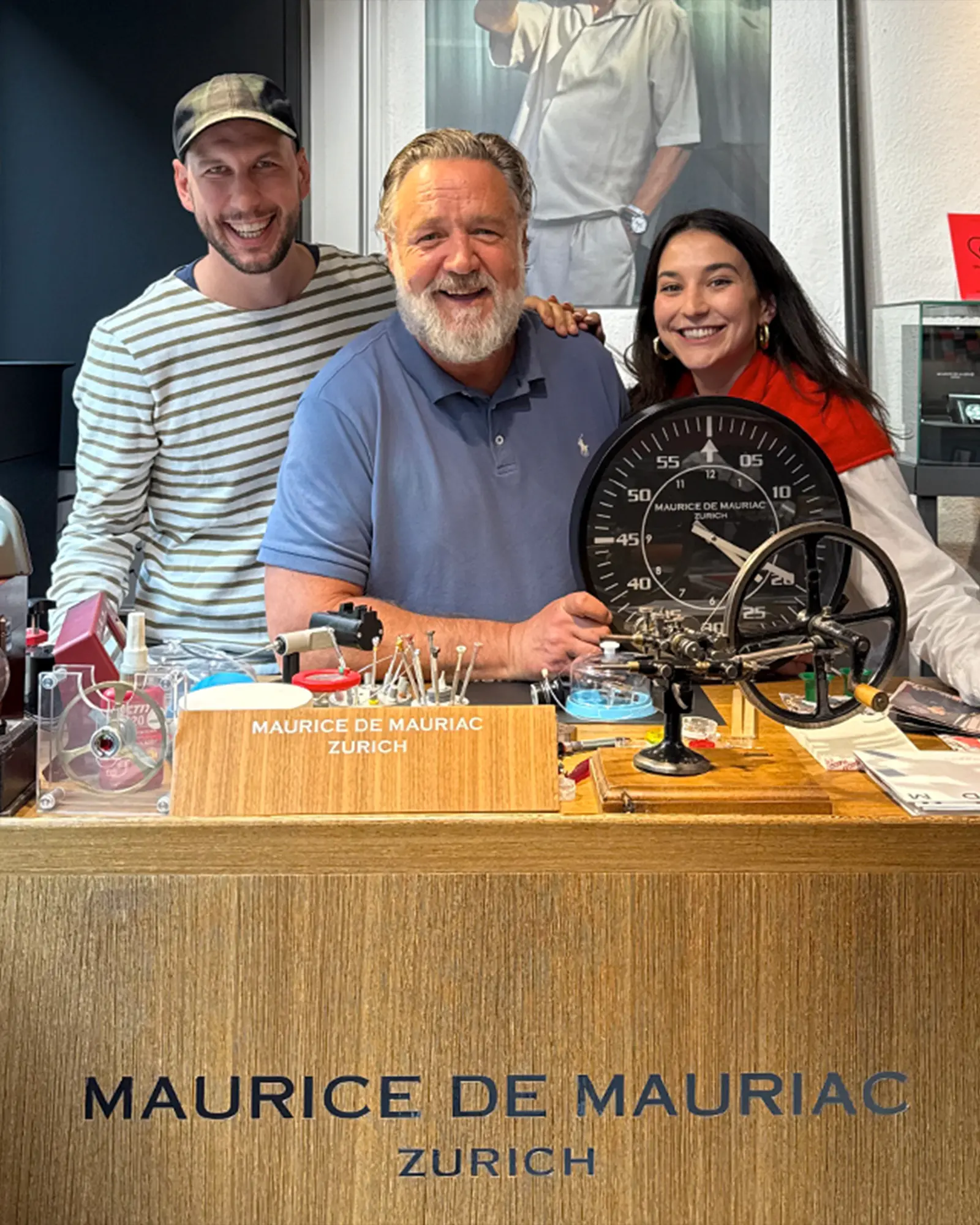 Und dann ist da dieser Moment, der alles verbindet: Russell Crowe. Bei einem Besuch in Zürich kaufte er eine Rallymaster III. Später lud er Massimo, Leonard und Masha ein, ihm die IV persönlich auf seiner Ranch überreichen zu können. Tennis verbindet. Zeit verbindet. Manchmal entstehen daraus Geschichten, die größer sind als eine Uhr.